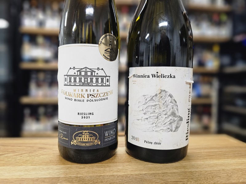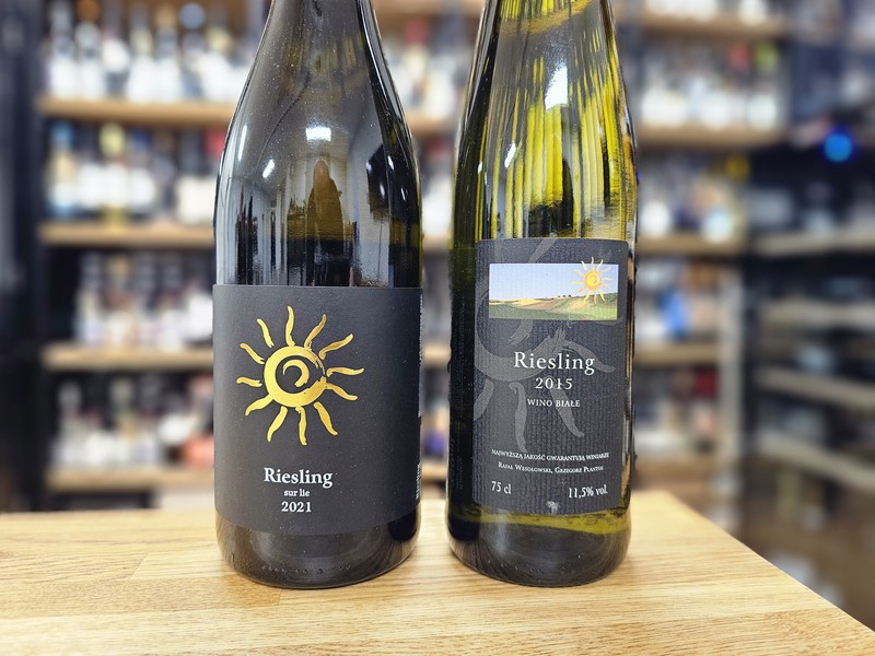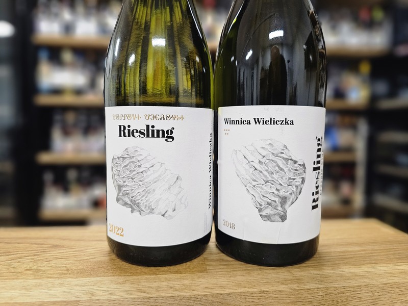Winnica Wieliczka Riesling 2022 vs 2018 (woj. małopolskie, gleba piaszczysto-gliniasta, krzewy z 2013, południowy stok (najwyżej położony punkt winnicy na 420 m n.p.m.). Zbiór koniec października, spontaniczna fermentacja, dojrzewanie na osadzie w stali 9-10 miesięcy. Oba roczniki wytwarzane w ten sam sposób). Winnica Wieliczka to jedna z pierwszych biodynamicznych winnic w Polsce. Skupiona wyłącznie na odmianach vitis vinifera. Riesling wytwarzany jest od samego początku, ale nie w każdym roku. Chłodne siedlisko sprawia, że w niektórych rocznikach wino stałe z tej odmiany nie powstało (w 2020 i 2021).