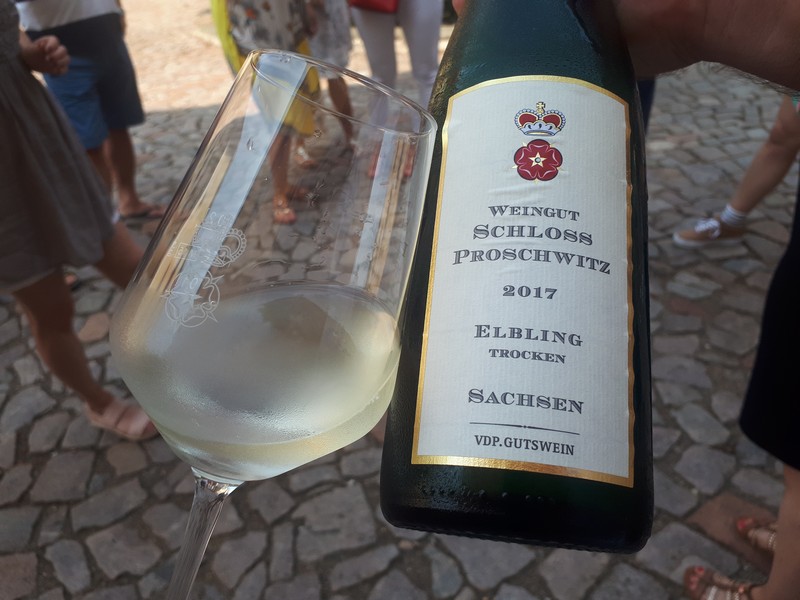 W Schloss Proschwitz najbardziej smakował mi Elbling. Obecność Elblinga mogłaby być nieco zaskakująca, ponieważ szczep jest endemiczny dla Mozeli. Okazuje się jednak, że Elbling był pierwszą i najbardziej popularną odmianą w Saksonii - tylko, że... niemal wyginął. To w Schloss Proschwitz zajęto się jego rekultywacją. Schloss Proschwitz Elbling 2017 pachnie cytryną, pomelo i soczystym jabłkiem, a usta zachwycają czystością i orzeźwiają sowitą kwasowością cytrynowego soku.
