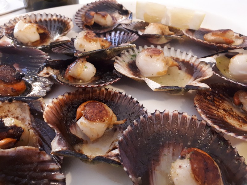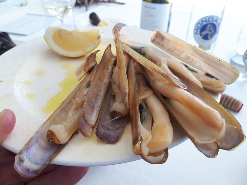 O wiele więcej emocji przysporzyło połączenie Albariño ze skorupiakami. Małże brzytwy skropione oliwą i doprawione solą morską to partner idealny pod mineralne i słone Albariño z Val de Salnes. To samo tyczy się Zamburinas - miejscowych małży (nieco mniejszych od małży św.Jakuba). "Niebo w gębie", szczególnie z Albariño pochodzącym z O Rosal.
