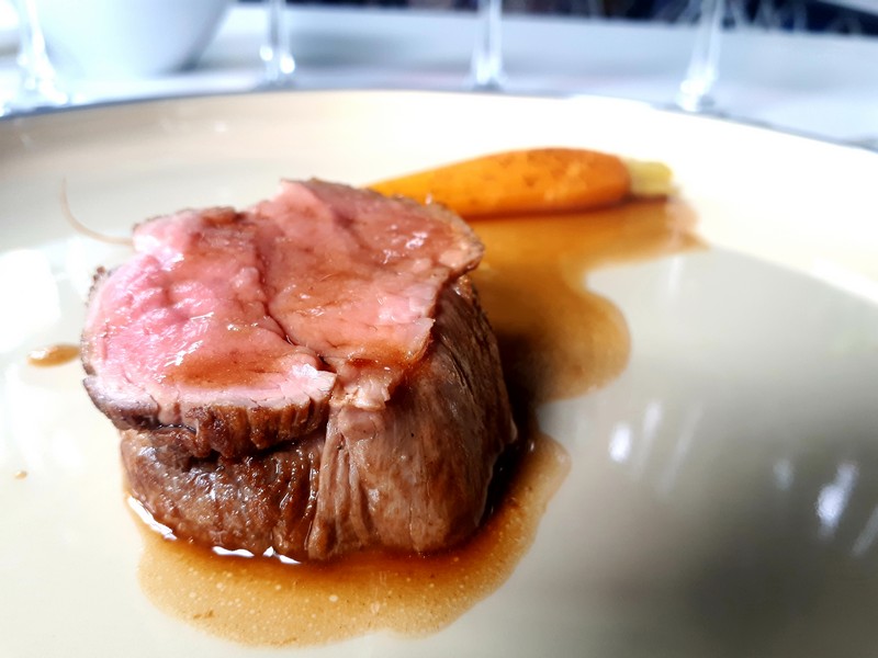 Gdybym miał pić solo, wybrałbym Cabernetisa. Jest złożony i delikatny równocześnie. Uwielbiam takie zestawienia na pozór się wykluczające. Natomiast w kontakcie z potrawą - polędwicą cielęcą z dymem z grilla oraz emulsją maślaną z cytrusami większość win czerwonych była za mocna. Jedyne czerwone, które miało w sobie sporą kwasowość i dymne nuty beczki - wypadło najlepiej - to Pinot Noir z Winnicy Turnau (srebrny korek w kategorii win czerwonych). Ciekawie zagrało też Rose z Winnicy Jakubów. Było może zbyt delikatne, ale obroniło się przed naporem cielęciny i dodało sporo soczystości całej kompozycji.