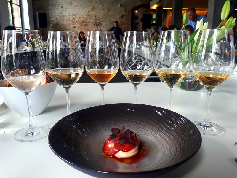 To już tradycja, że w sobotni poranek odbywa się komentowana degustacja 30 polskich win, ułożonych w pięć setów po 6 win (był też jeden cydr). Każdemu setowi towarzyszyła dedykowana potrawa. W tym roku autorem dań był Jakub Hamankiewicz z łódzkiej restauracji Afogato. Muszę przyznać, że Pan Jakub stanął na wysokości zadania i wykazał się niezwykłym czuciem stylistyki polskich win.