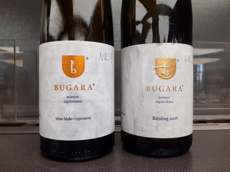 Wina z Winnicy Bugara - po lewej "czempion" Riesling Spatlese na wytrawnie z rocznika 2015