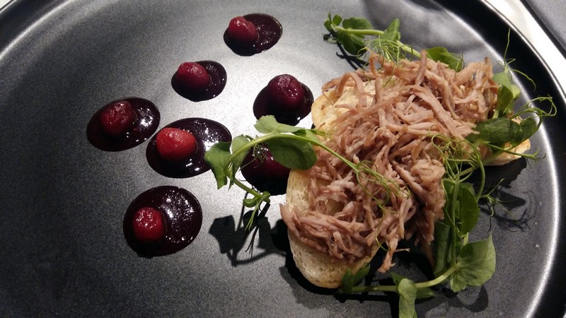 Magnesia z kolei reprezentowana w trzech rocznikach, mimo różnic pogodowych, pokazała ciągłość filozofii producenta. To na pozór lekkie wino, ma w sobie jakiś dynamit. Jest napięte jak struna, żywe, soczyste i jak mogłem doświadczyć, ma potencjał kilku lat dojrzewania. Magnesia 2014 pokazała świetną integrację tanin z kwasowością i pikantno-wiśniowe, zweigeltowe wykończenie. Ale to rocznik 2016 przemówił do mnie najbardziej. W nosie szerokie spektrum aromatów, od dojrzałych porzeczek, jagód, suszonej żurawiny, przez buraczki, po zioła i akcenty wanilii. Usta są delikatnie wytrawne, z soczystą kwasowością i sporą kompleksowością smaku. Dużo tu żurawiny i wiśni. Wino z potencjałem na kilka lat. Jestem ciekaw jak się zaprezentuje w 2020. By podkreślić walory wina, SPOT podał przekąskę składającą się z kaczki, pyzy i żurawin. To jest wymażony zestaw dla Magnesii. Palce lizać. Wino i kompozycja z przekąską bardzo dobre.