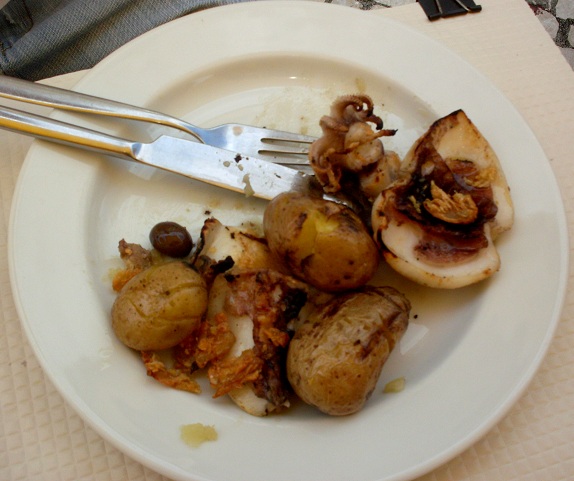 Czas się posilić :) Vinho Verde w towarzystwie ośmiorniczek doprawionych czosnkiem i podane po prostu z młodymi ziemniaczkami gotowanymi w mundurkach i przesmażonymi na oliwie. Jest to jedna z miliona codziennych dań portugalskich. Świeże produkty i piękno zawarte w prostocie.