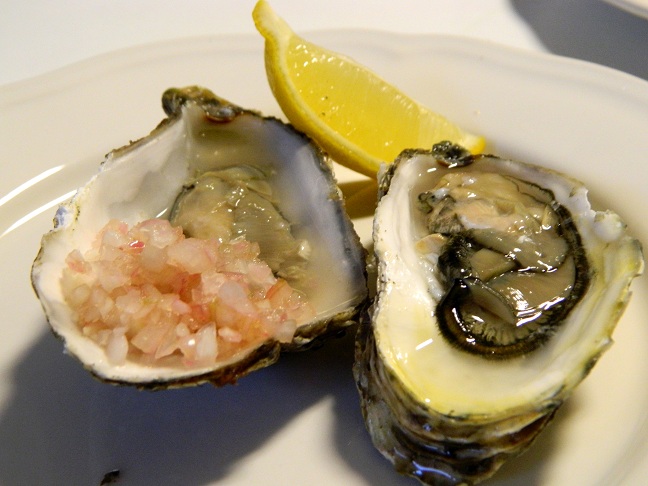 Ostrygi podane z cytryną i cebulką