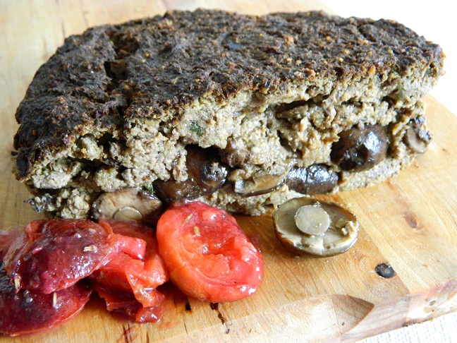 Na kilogram grzybów potrzebowaliśmy pół kilograma wątróbki, żeby nasz pasztet ładnie się związał. Gdyby był już sezon na gęsinę, zastosowalibyśmy gęsią wątróbkę. Tu użyliśmy wieprzowej. Dorodny kawałek podduszonej wcześniej wątróbki pokroiliśmy na cienkie plasterki. Następnie zblendowaliśmy ją z cebulką i nóżkami podduszonych grzybów. Blendowaliśmy dość grubo, żeby pasztet posiadał wyraźną teksturę. Do gotowej masy dorzuciliśmy jeszcze 2 jajka i wymieszaliśmy. Gdy grzyby ostygły, a wątróbka była już zmiksowana, natłuściliśmy żaroodporne naczynie oliwą. Wypełniliśmy je masą pasztetową, tworząc warstwy z plasterków wątróbki, pokrojonych grzybów i kapeluszy doprawiając świeżą szałwią. Pasztet piekliśmy około godzinę w piekarniku nagrzanym do 160 stopni. Gdy wyjęliśmy go z piekarnika, potrzebował trochę czasu aby ostygnąć. Nie wolno kroić go gdy jest ciepły, ponieważ z pewnością się nam rozpadnie.