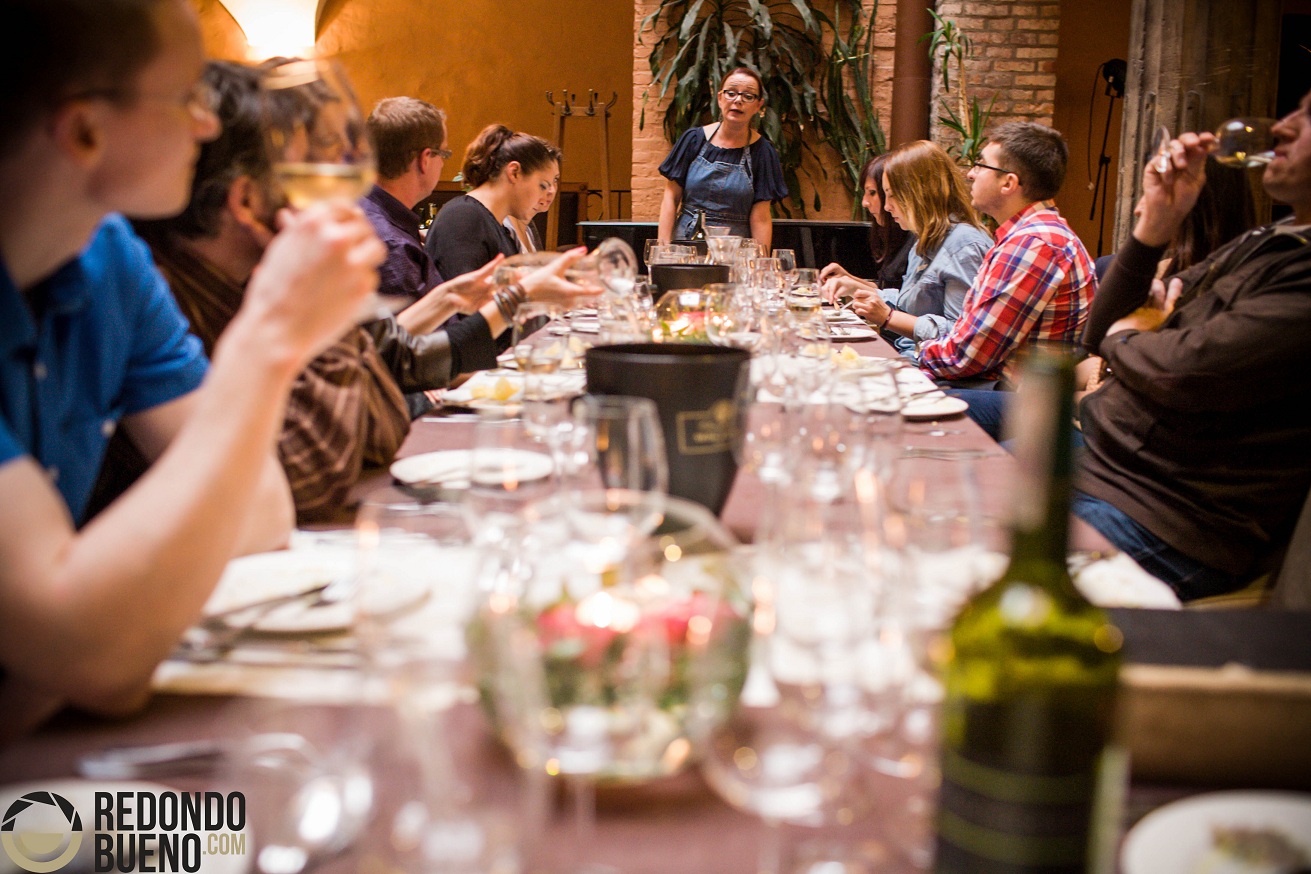 Pierwszą potrawą, która zagościła na stole, był sandacz podany z sosem na bazie masła, posiekanych jajek i pietruszki. Wysokiej jakości ryba jeziorna, polana maślanym sosem, rozpływała się w ustach. Do sandacza zaserwowaliśmy wino białe ze szczepu Sibera. Posiadało ono wybitnie jabłkowy nos i cytrynowy charakter w smaku. Wino było wybitnie kwasowe i degustowane bez potrawy, wzbudziło wiele emocji, zwłaszcza u osób przyzwyczajonych to bardziej zrównoważonych win z cieplejszych regionów Europy. Nic dziwnego, skoro wino posiada tylko 0,5 g cukru resztkowego (!!!) Tak wytrawne i kwasowe białe wino, w połączeniu z maślanym sosem, stało się akceptowalne nawet dla tych, którym wino samo w sobie było nie do przełknięcia. Dodatkowo cytrusowa kwasowość skutecznie zastąpiła cytrynę w staropolskim sandaczu. Sandacz w sosie maślanym z winem Sibera to naszym zdaniem najlepsze połączenie winno-kulinarne tego wieczoru. Polecamy!