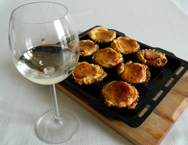 Wino ujmuje jasnosłomkowym kolorem z seledynowymi refleksami. Aromat jest powściągliwy, a nuty gruszkowe i kwiatowe przyjemnie odprężają. W smaku lekkie, potoczyste, skojarzyło nam się z kompotem z białych czereśni. Mimo naturalnej słodyczy, wychwyciliśmy goryczkę przypominającą skórkę winogrona i delikatną kwasowość. Owocowy charakter ciastek świetnie współgrał z wybranym przez nas winem. Zarówno deser jak i wino - w zestawieniu wydawały się być mniej słodkie, niż były w rzeczywistości. Szczególną nić porozumienia znalazły ze sobą owoce kaki i owoce w winie...