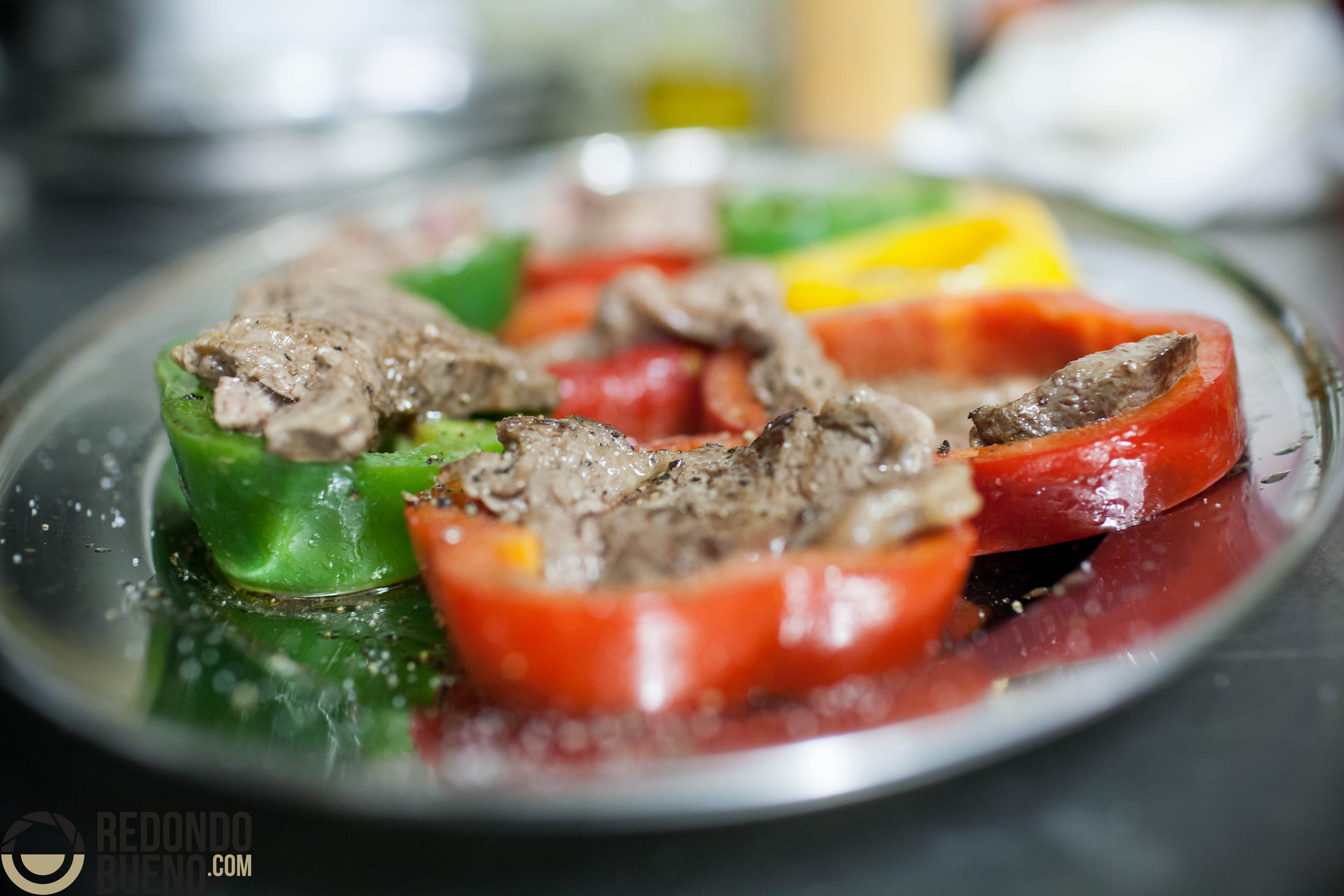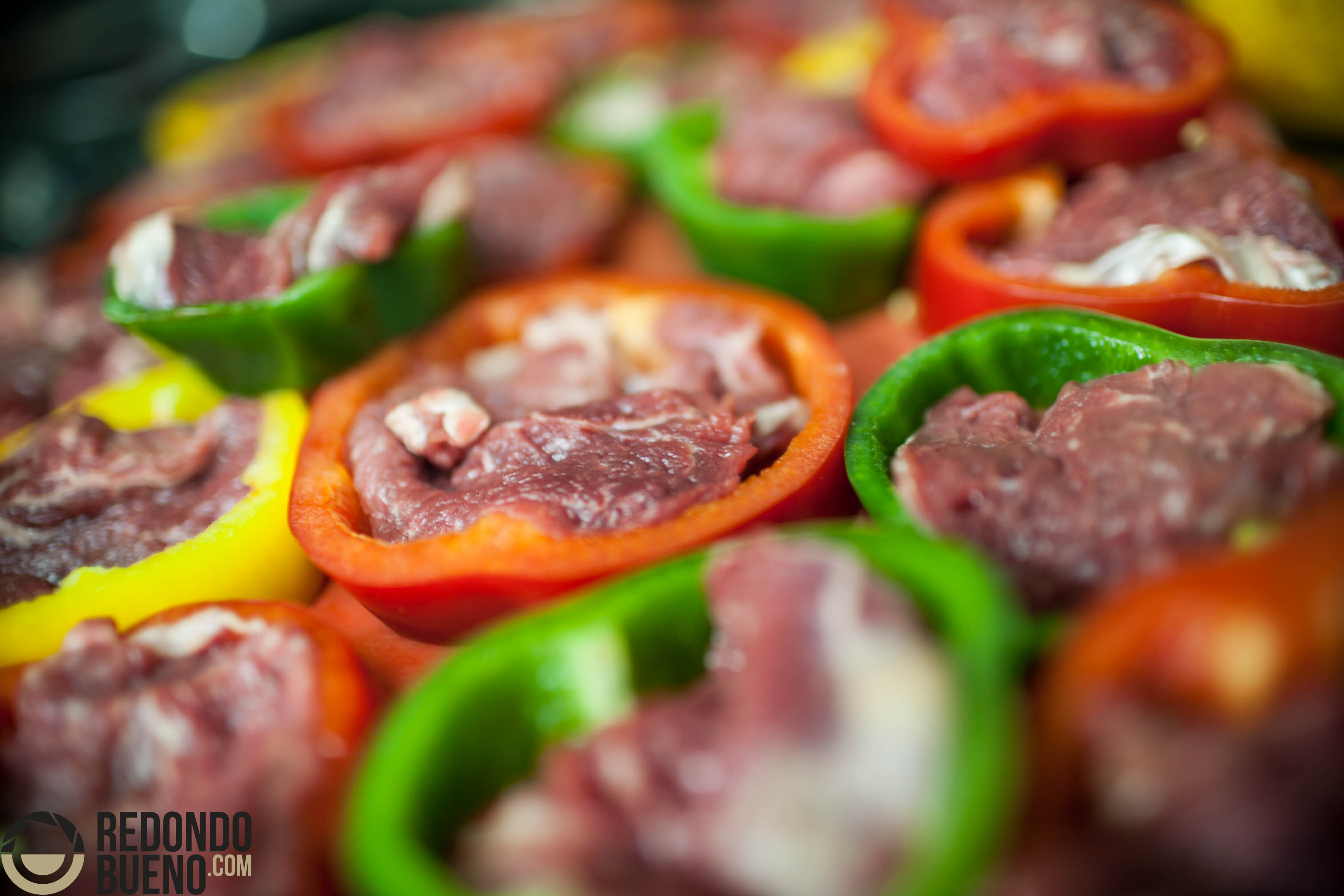 Przekąska ciepła II: Polędwica wołowa w obręczach z papryki + Kekfrankos Selection od Heimann'a (Szekszard).