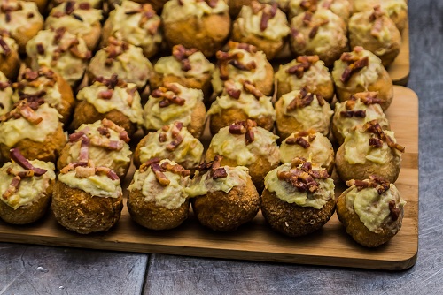 Paczki z farszem kaczym, lukrem cebulowym i posypka z boczku, serwowane z winem Logisch Balurfankisch/Zweigelt