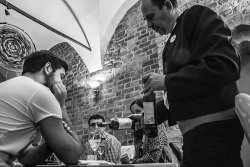 Aperitif serwowany przez venenciadora Macieja Katarzyńskiego - wino sponsorowane przez Bodegas Toro Albala