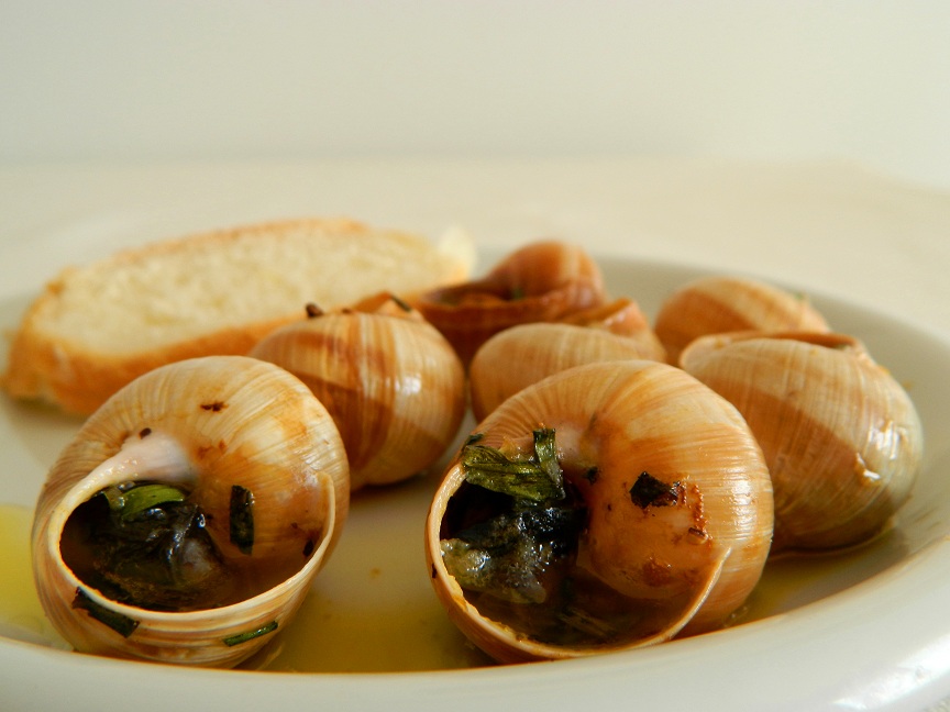 Po zebraniu ślimaków o średnicy od 3 do 5 cm, zostawiliśmy je na dwa dni bez pokarmu aby się oczyściły. W dużym szerokim garnku zagotowaliśmy osoloną wodę i wrzucaliśmy do niej żywe ślimaki. Po około 30 minutach gotowania, wystudziliśmy je, wyjęliśmy ze skorupek i oczyściliśmy usuwając czarny przewód pokarmowy. Następnie dusiliśmy ślimaki przez około pół godziny w bulionie warzywnym z dodatkiem białego wina. W tym czasie należy wyszorować skorupki i dodatkowo sparzyć je wrzątkiem. Kolejnym elementem jest masło czosnkowo-ziołowe. Miękkie masło utarliśmy z posiekanym ząbkiem czosnku i posiekanym drobno szczypiorkiem. Można dodać odrobinę wywaru z gotowania ślimaków.