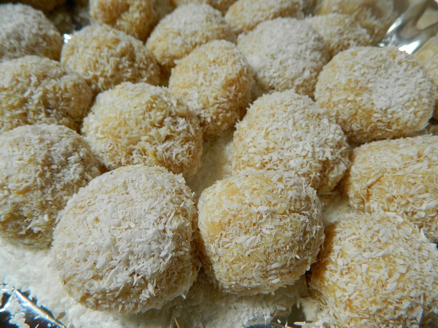 Iga twierdzi, że nie potrafi robić deserów i podkreśla to za każdym razem. Wszyscy goście kolejny raz przyznali że deser kolejnego klubu kolacyjnego znów był hitem. Tym razem były to słodkie kuleczki w dwóch różnych stylach. Beijinhos de coco to brazylijski deser z żółtek i słodkiego skondensowanego mleka gotowanego w kąpieli wodnej do zgęstnienia, a następnie podany w formie kuleczek otoczonych a kokosowych wiórkach. Z kolei cajuzinho to także brazylijski deser z uprażonych na złoto niesolonych orzeszków ziemnych, zmielonych i wymieszanych z cukrem, kakao i tartą gorzką czekoladą, uformowany na kształt lekko podłużnych cukierków. Do słodyczy podaliśmy wino, które oryginalnei polecane jest na aperitif, ale w polskich warunkach i tak odbierane jest jako słodkie. Półwytrawna Madeira Rainwater od producenta Henriques & Henrigues stworzona z czerwonej odmiany Tinta Negra Mole, po uprzednim schłodzeniu bajecznie skomponowała się szczególnie z kokosowymi pocałunkami (beijinhos de coco). Wino to jest ciekawostką, ponieważ jest praktycznie niedostępne w Europie, 99% produkcji transportowana jest do USA, a na stronie producenta to wino nie istnieje.