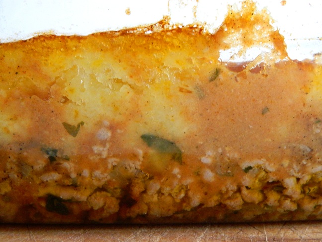 Jesień w pełni i choć w tym roku wyjątkowo nas rozpieszcza, to chętniej sięgamy po rozgrzewające i pożywne dania. Postanowiliśmy przygotować klasyczną brytyjską zapiekankę. Mięso z szynki wieprzowej zmieliliśmy. Dużą cebulę zezłociliśmy na klarowanym maśle, dodaliśmy mięso, doprawiliśmy solą i pieprzem i dusiliśmy około kwadransa. Na koniec dodaliśmy pęczek posiekanej zielonej pietruszki. Ziemniaki po ugotowaniu utłukliśmy z mlekiem na puszyste puree. Na dnie żaroodpornego naczynia ułożyliśmy mięso polewając je sosem przygotowanym z masła zasmażonego z mąką, rozprowadzonego bulionem i doprawionego odrobiną koncentratu pomidorowego i musztardy. Ziemniaczane puree rozprowadziliśmy równą warstwą na wierzchu i posypaliśmy startym zimnym masłem. Zapiekankę piekliśmy około 25 minut w 200 stopniach.