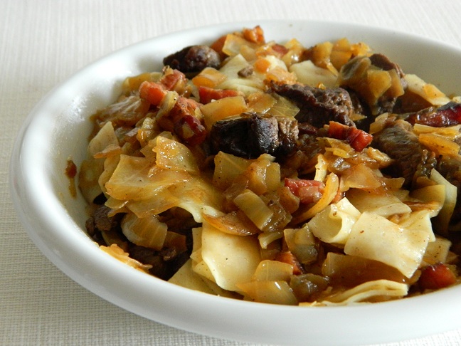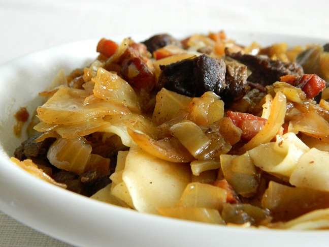 2. Łazanki w wersji de luxe z kapustą i kawałkami polędwicy z dzika.