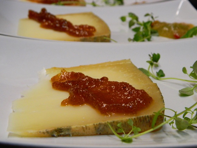 5. Ser owczy z sosem pigwowo miodowym i konfiturą z jabłek oraz tymiankiem.