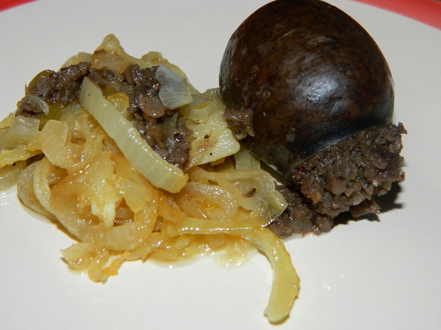 Ciepłą przekąskę stanowiła typowa dla Murcii, przywieziona stamtąd, morcilla. To miejscowa kaszanka, a właściwie bułczanka, podobna do polskiej, zarówno w smaku, jak i konsystencji. W odróżnieniu od morcilli z innych regionów Hiszpanii, jest bardziej korzenna (dodaje się anyż, cynamon i imbir) i nie podaje się jej w plastrach, tylko w całości. My podaliśmy ją z duszoną cebulą.