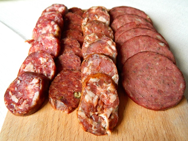 W sklepie Zdrowe Mięsa zakupiliśmy kilka rodzajów wędlin pod kątem czerwonych win, a mianowicie podsuszaną i wędzoną kiełbasę końską, suchą surową z sarny, surową z dzika, pikantną końską. Okazało się, że najbardziej uniwersalnym winem był Monastrell, czyli znów najlżejsze z trzech win pochodzących z Jumilli. Garnacha i Syrah były zbyt charakterne dla tego zestawu.