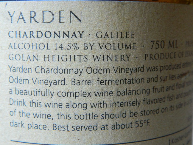 Yarden Chardonnay 2012 to pełne, dobrze zbudowane, beczkowane wino z Izraela. Jest typowym przedstawicielem nowo-światowego stylu tej odmiany. Sporo alkoholu 14,5%, esencjonalność i swoista "tłustość" dzięki leżakowaniu w dębowych beczkach, idą w parze z delikatną kwasowością, jak i przyjemnymi nutami dojrzałych owoców tropikalnych. W winie dominują brzoskwinie, morele, ale odnaleźć można słodką żółtą śliwkę i sporo masła i wanilii. Mimo wytrawności, jest tu sporo słodkiego owocu.