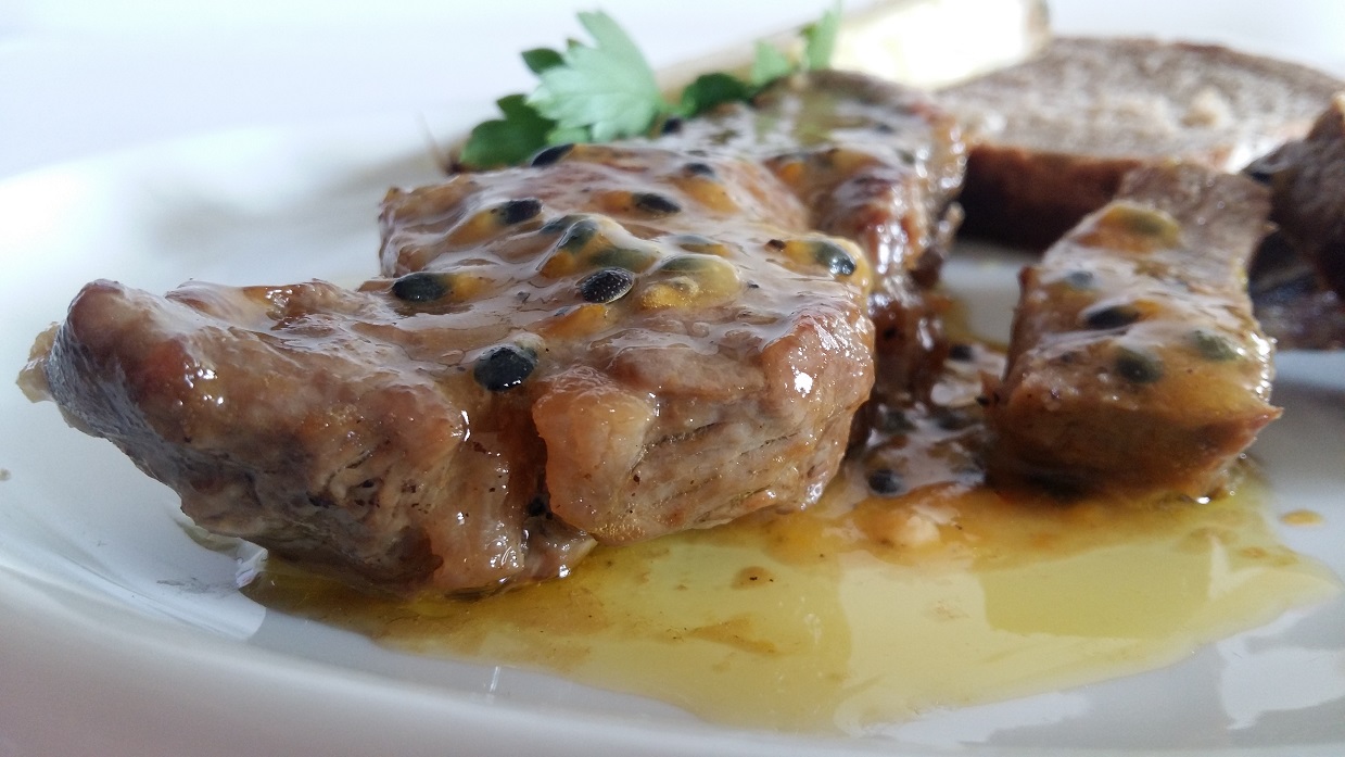 Dziś zaprezentujemy Wam potrawę pochodzącą z Azorów, gdzie Iga spędziła swoje wakacje. Wyspa ta słynie z wyśmienitej wołowiny, ale także z pomysłowości w przyrządzaniu jej. Do naszego dzisiejszego tematu świetnie pasuje wołowina w sosie marakujowym, podana ze świeżym ananasem.