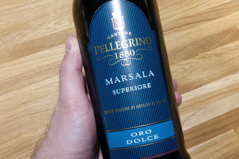 Marsala to wzmacniane sycylijskie wino. W tym przypadku jest to "Oro" czyli złote, wytworzone z Cataratto i Grillo, leżakowane ponad 2 lata w beczkach ułożonych w solerze. Nos intensywny i likierowy, przypominający pomarańczowy likier, suszone morele, ale też orzechy i wanilię. Usta słodkie, ale z przyjemną, żywą kwasowością. W smaku słodki, suszony owoc, rodzynki, migdały i pomarańcze.