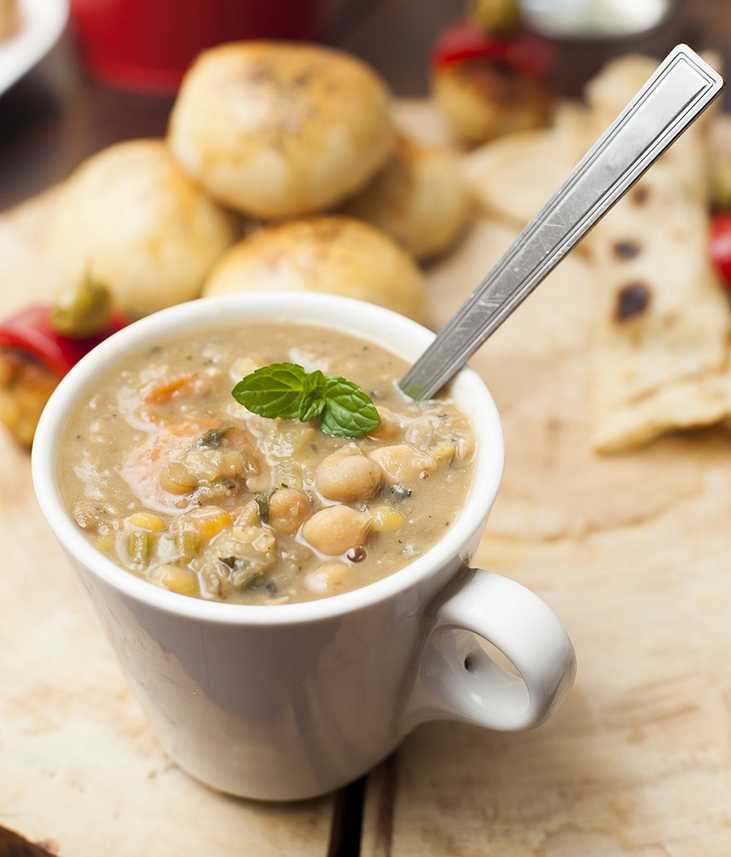 * Zimowa zupa z baraniny i grochu z dodatkiem suszonych moreli