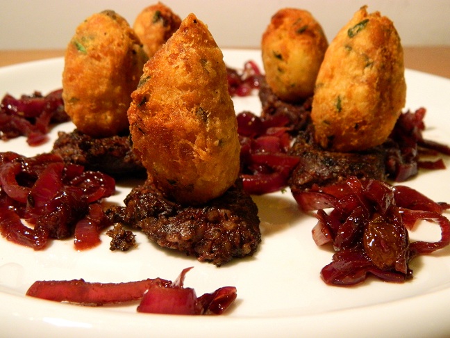 W związku z urodzinami i fascynacjami Igi, przygotowaliśmy portugalskie danie - pasteis de bacalhau com morcela (suszony dorsz atlantycki na kaszance). Połączyliśmy danie z portugalskim winem, aby jubilatka była w pełni zadowolona...
