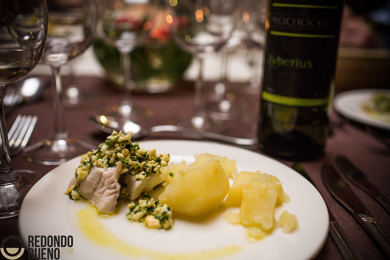 Rozpoczęliśmy od aperitifu, którym było wino ze szczepu Seyval Blanc. Wino białe, rześkie i delikatnie kwasowe. Odrobina mineralności i cukru resztkowego (wino półwytrawne) predestynowały je do tego, by wyczyścić kubeczki smakowe i przygotować gości do staropolskich potraw.