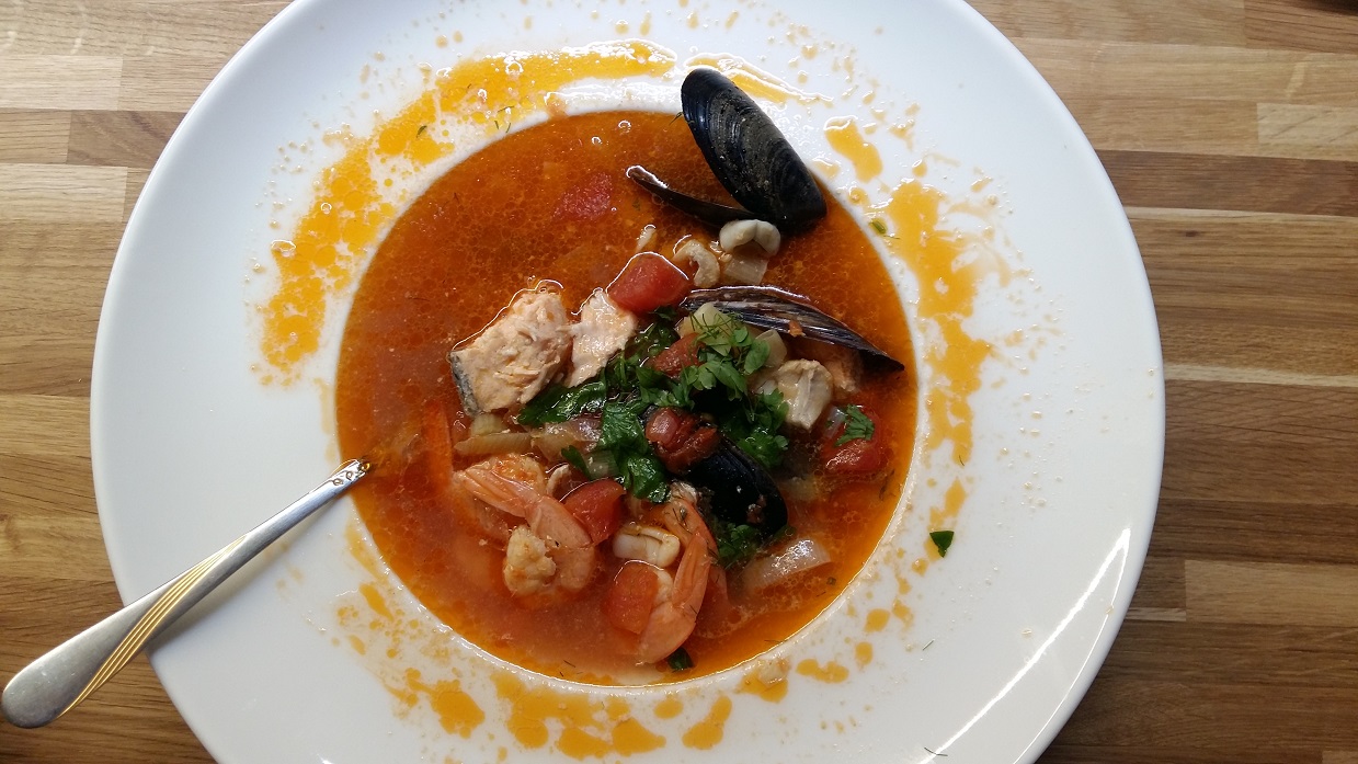 Bouillabaisse to pochodząca z południowej Francji, esencjonalna zupa z owoców morza i ryb. Taki marsylski, morski bigos, który kiedyś gotowano z odpadków pozostałych po połowach. Podstawą zupy jest mocny wywar z warzyw, resztek ryb, skorupek krewetek, homarów, krabów, w zależności od tego co rybakom zostało w sieci. Nieodzowne jest dodanie szfranu, któremu zupa zawdzięcza piękny kolor. Niegdyś potrawa z resztek, a dziś symbol Marsylii..
