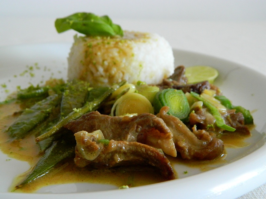 Jakie wino do wołowiny? Zazwyczaj czerwone, ale wiele zależy od sosu. Dziś klasyczny przykład potrawy z wołowiny, która bardziej pasuje do wina białego niż czerwonego. A wszystko przez dodatki. Przygotowaliśmy wołowinę z groszkiem cukrowym w zielonym curry.