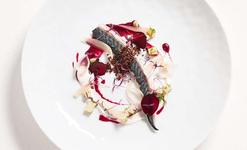 Zainspirowani pomysłem na połączenie makreli, buraków i chrzanu zamieszczonym w artykule na stronie www.finedininglovers.com, podjęliśmy wyzwanie i nie tylko chcieliśmy się przekonać, czy te składniki do siebie pasują, ale też spróbować dobrać wino do tej kompozycji. Nie lubimy odtwarzać, wolimy tworzyć. Jeśli inspirujemy się czyimś pomysłem, najczęściej urozmaicamy i dodajemy trochę inwencji własnej. Poza wymienionymi wyżej składnikami, użyliśmy jeszcze owczego sera (bundz) oraz szczypiorku. Zdecydowaliśmy się także na inną wizualizację potrawy. Potrawa w oryginale wygląda tak: