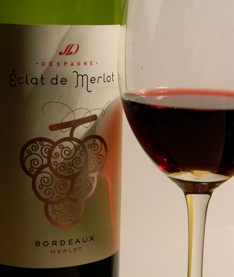 Danie, mimo użycia gęsiego smalcu, nie było zbyt tłuste. Serca gęsie są mięsem ciemnym, chudym, o specyficznej (podrobowej) teksturze. Żeby nie zdominować tej potrawy potrzebowaliśmy wina o niedużej taninie, zrównoważonej kwasowości i niezbyt solidnej owocowości... Wybraliśmy Eclat Merlot od Mirambeu z Bordeaux, które te kryteria spełniało. Rzecz jasna, w młodym winie Merlot owoc jest, ale poza nim odnaleźliśmy lekko stajenne i przyprawowe nuty. Wino dobrze współgrało z gulaszem, ożywiając trochę konsystencję serc i komponowało się z rozmarynem i majerankiem użytymi w sosie.