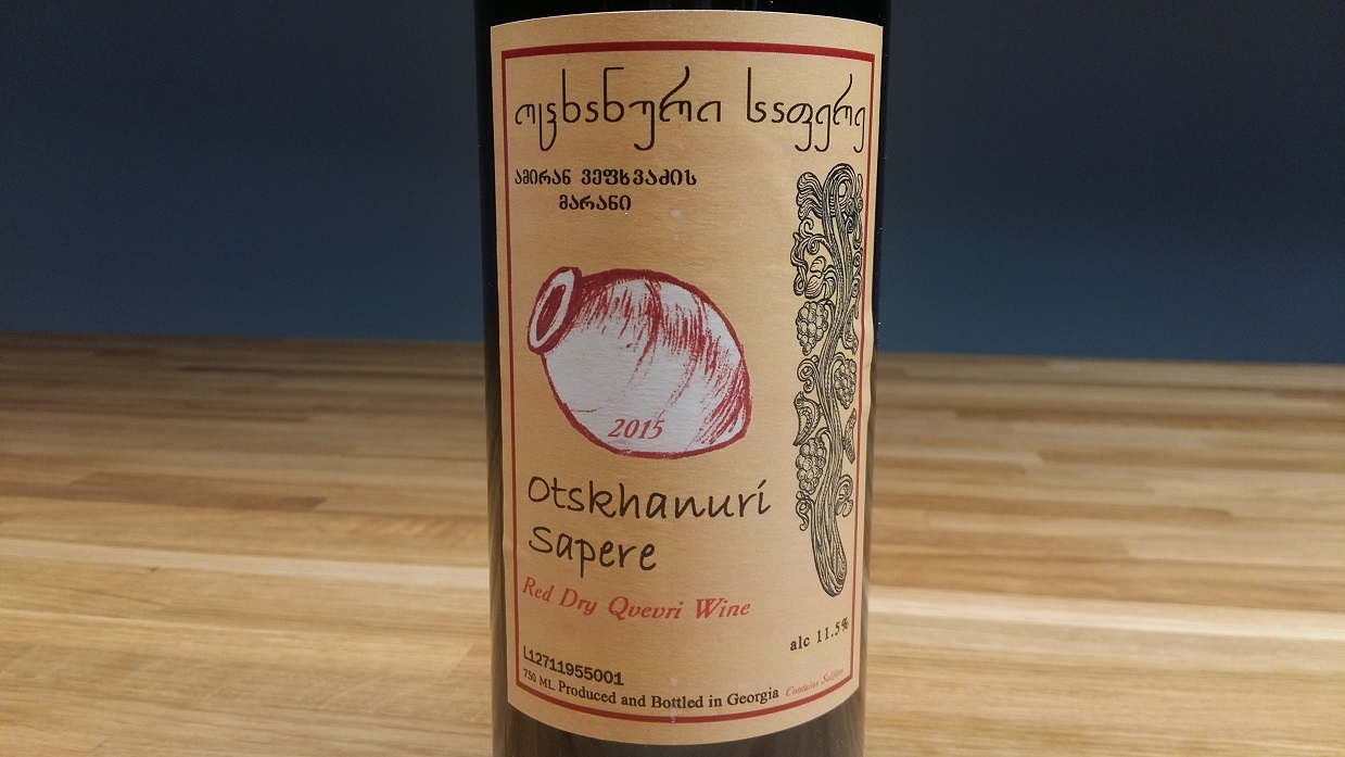 Otskhanuri Sapere to szczep dający nasycone, ciemne i drapieżne wina, dlatego by je złagodzić niektórzy producenci dodają do zestawienia odmiany białe. W tym przypadku aż 30% to szczep Tsolikouri. W kolorze wino jest średnio-purpurowe. Nos intensywny, hibiskusowy, z aromatami ciemnych owoców - jagód i jeżyn, ale po czasie pojawiaja się akcenty mięsne i krwiste (krew kaczki / czernina z owocami). Usta dość lekkie, z delikatną taniną i soczystą kwasowością. W smaku dojrzała wiśnia i galaretka z leśnych owoców. Nie trzeba dekantować, a skorzysta na trochę niższej temperaturze.
